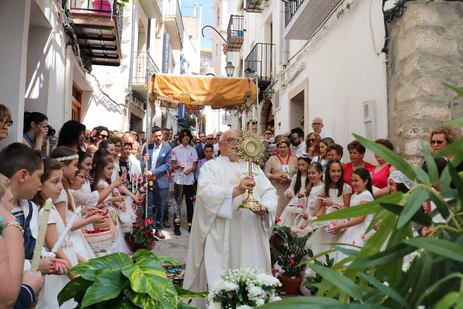 Peñíscola ha celebrado hoy la festividad de Corpus Christi con la eucaristía y la tradicional procesión por las calles del casco antiguo, protagonizada por la Custodia bajo Palio y las niñas y niños que han tomado este año su Primera Comunión. Al festejo ha asistido la corporación municipal.