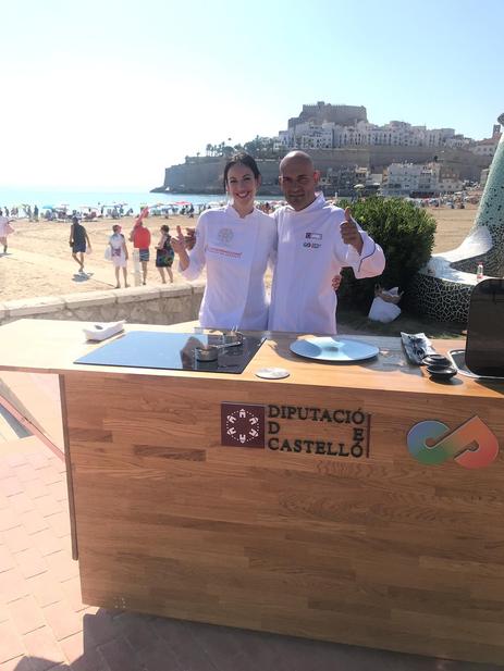 En Peñíscola, el chef búlgaro ha estado acompañado por dos referentes de la cocina provincial, el chef Raúl Resino, del Restaurante Raúl Resino de Benicarló, y la chef Ángela Millán del Restaurante Vinatea de Morella.