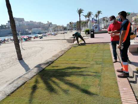 Las áreas de Medio Ambiente y Servicios del Ayuntamiento de Peñíscola continúan con los trabajos de mejora de la jardinería en el paseo marítimo que discurre paralelo a la Playa Norte de la ciudad.