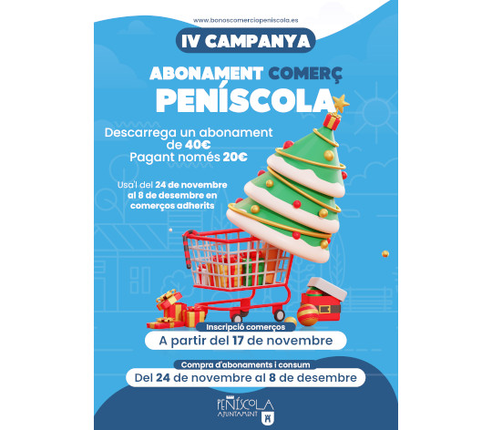 - En el programa Bonos Comercio Peñíscola cada persona empadronada en el municipio dispondrá de un máximo de 200 €, de los que paga 100 € y el Ayuntamiento de Peñíscola le subvenciona otros 100 € para poder canjear en los establecimientos participantes que se pueden consultar en este apartado de la web.