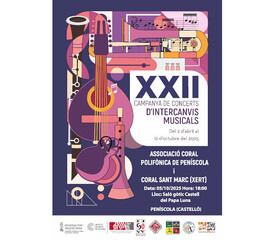 En esta ocasión, las agrupaciones participantes serán la Coral Polifónica de Peñíscola, dirigida por Raquel Bayarri Bayarri, y la Coral San Marc de Xert, dirigida por Carlos Vives Sebastià, que nos ofrecerán un concierto de música vocal con piezas individuales y también conjuntamente.