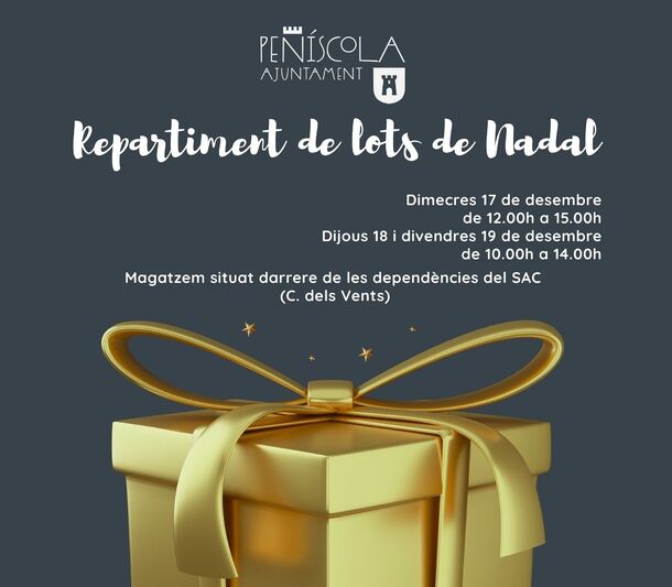 Entrega de los lotes de Navidad a las personas mayores de 65 años empadronados en Peñíscola, obsequio del Ayuntamiento a sus mayores.