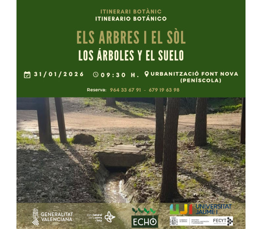 Para celebrar el Día del Árbol haran un itinerario por el interior de la Serra d’Irta en el cual se podrá ver cómo ha evolucionado la vegetación a lo largo del tiempo y conocer las especies de árboles más representativas del parque natural. Al llegar al Mas del Señor se hará un muestreo en que se recogerá varios indicadores de la calidad de suelo entre todas las persones participantes y se reflexionará sobre nuestra relación con el suelo. Este muestreo forma parte del proyecto ECHO, un proyecto de ciencia ciudadana sobre la calidad del suelo en toda Europa, y, del cual, la UJI es una entidad embajadora.