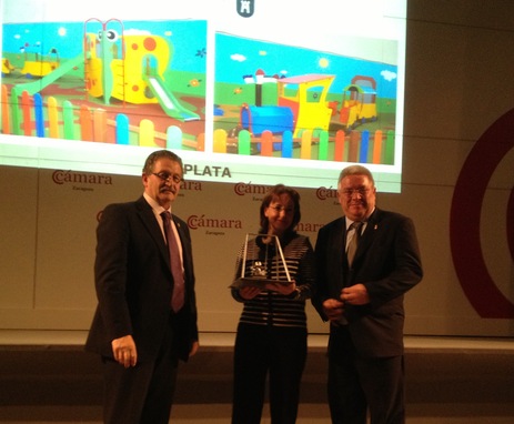 El concejal de Urbanismo, Romualdo Forner y la arquitecto técnico del Ayuntamiento de Peñíscola, Dulce Pascual, en su nombre y en el de su compañera Natalia Tomé, arquitecto municipal, han recogido hoy en Zaragoza el trofeo "Columpio de Plata" concedido al parque infantil de la ciudad ubicado el en núcleo suburbano recientemente reurbanizado, concretamente en la calle Pescadores.