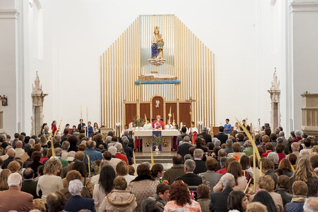 Peñíscola inicia la celebración litúrgica de la Semana Santa con el Domingo de Ramos y la Bendición de las palmas en el santuario de la Virgen de la Ermitana, para continuar con la misa en la Parroquia de Santa María. La altísima participación y la procesión de bombos añadieron emoción a la eucaristía que congregó a centenares de fieles en el inicio de la Pascua cristiana.