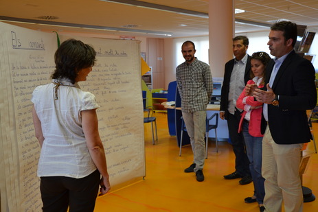 La Biblioteca Municipal de Peñíscola ha celebrado hoy el Día Internacional del Libro con un homenaje a Vicent Andrés Estellés, en este año en el que se celebra el 20 aniversario de su muerte. Poemas de su Antología Poética han ocupado las páginas del Libro de los Deseos que preside el espacio de lectura en el día de hoy, cuya contraportada está confeccionada con cintas de colores en las que los usuarios de la biblioteca han podido plasmar sus deseos. Un total de 800 cintas cubren los lomos de este libro gigante e interactivo que propone a todos los visitantes de la Biblioteca elegir su frase y llevar la cinta para emplear como pulsera o marca-páginas. El alcalde, Andrés Martínez, y la concejala de Cultura, María Amparo Bayarri, no han querido perderse la jornada y han compartido con el personal bibliotecario parte de esta mañana, en la que el trasiego de visitantes se ha visto sorprendido por este Libro de los Deseos monumental. El alcalde ha felicitado al equipo de la concejalía por la iniciativa y ha reconocido el recientemente otorgado premio María Moliner a la Biblioteca de Peñíscola por su labor en la tarea del fomento de la lectura.