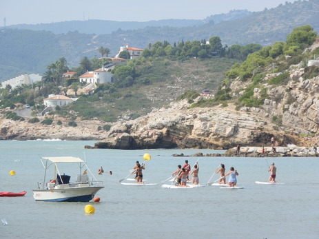 La playa Sur de Peñíscola se ha convertido hoy en un gran escenario donde los deportes náuticos han sido los verdaderos protagonistas. Paddle Surf, vela, buceoy snorkel son las cuatro propuestas que han colmado la mañana y parte de la tarde. Y es que con sólo 5 euros, cualquier amante de los deportes acuáticos ha podido vivir en primera persona y durante media hora la experiencia de practicar cualquiera de estas disciplinas. El evento forma parte de la programación de la Fiesta del Mar 2013, clímax de las actividades veraniegas que organiza la Estación Náutica Benicarló Peñíscola.
