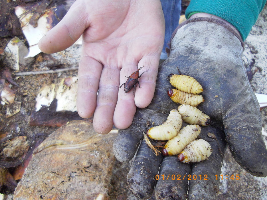 La época óptima de poda sería los meses invernales (enero y febrero), donde estos insectos están más inactivos e ir tratándolas a la par para evitar que acudan a la llamada del olor que desprenden los cortes de las palmas.