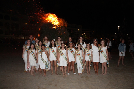 A medianoche, la Reina y Damas de las Fiestas 2017 procedieron a encender la Hoguera de San Juan en la misma playa acompañadas por el alcalde, Andrés Martínez, y la concejala de Fiestas, Raquel París. El