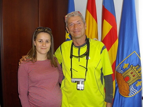 Este intrépido madrileño que se ha propuesto dar la vuelta a España en bicicleta, a lo largo de un año, Juan de la Fuente, ha recalado en Peñíscola y ha saludado, como suele hacer en cada municipio que escoge para visitar, a uno de los miembros del equipo de gobierno, en esta ocasión ha sido la concejala de Cultura, María Amparo Bayarri quien ha recibido y atendido al deportista, con quien ha posado para ilustrar la información sobre el encuentro en su particular cuaderno de Bitácora www.asisomosen2012.com