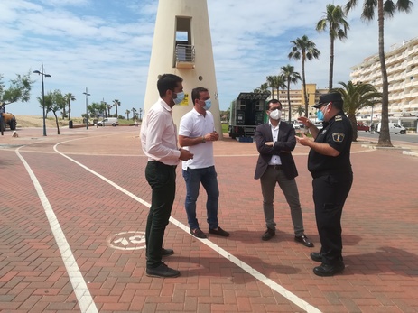 El concejal del área de Urbanismo, junto al área de tráfico de la Policía Local, están trabajando en la señalización del paseo marítimo, más de cinco kilómetros que discurren paralelos a la Playa Norte.