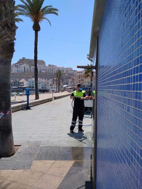 Continúa la adecuación de servicios en las playas de Peñíscola con la puesta a punto y desinfección de aseos públicos