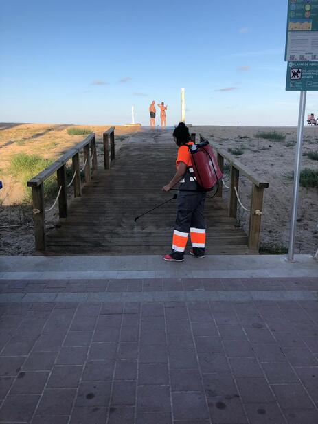 "La principal diferencia con los años anteriores ha sido la inclusión de la desinfección de zonas comunes y mobiliario en playas, como las pasarelas, duchas y Lavapiés, tal y como contempla el Plan de Contingencia, tres veces cada día" ha explicado el concejal del área de Servicios, Jorge Rovira.
