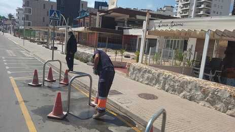 La Brigada de Obras y Servicios del Ayuntamiento de Peñíscola, en colaboración con la Policía Local, ha instalado tres nuevos puntos de aparcabicicletas en diversos tramos de la Avda. Papa Luna.