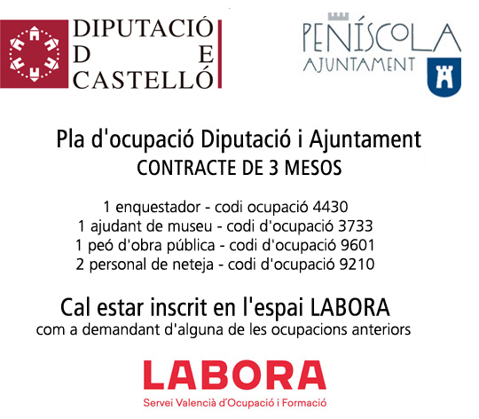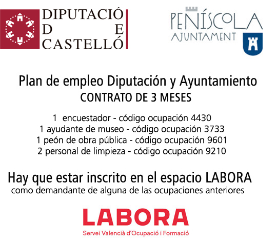 El Ayuntamiento de Peñíscola, en el marco del programa de empleo de la Diputación y los ayuntamientos, hace la siguiente: