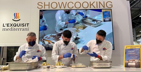 La gastronomía peñiscolana también ha estado presente hoy en Fitur con una demostración gastronómica con posterior degustación para los asistentes, de un trampantojo de Ferrero Rocher.