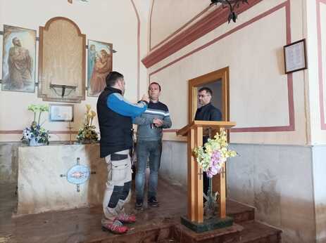 Durante la visita le ha acompañado el alcalde del municipio, Andrés Martínez, que ha conversado con los distintos operarios que ultiman las tareas en estos días.
