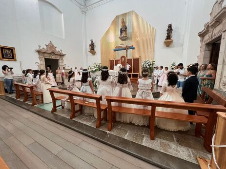 Peñíscola ha celebrado hoy la festividad de Corpus Christi con la eucaristía y la tradicional procesión por las calles del casco antiguo, protagonizada por la Custodia bajo Palio y las niñas y niños que han tomado este año su Primera Comunión. Al festejo ha asistido la corporación municipal.