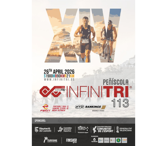 Infinitri 113 Triathlon Peñíscola ofrece un gran desafío a principios de temporada gracias sus rápidos y exigentes circuitos de ciclismo y carrera a pie, que discurre junto a las calas vírgenes del Parque Natural de la Serra d’Irta.