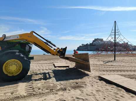 El área de Playas del Ayuntamiento de Peñíscola está coordinando las tareas de adecuación de las playas de la localidad “tareas de rutina previas a la llegada de la Semana Santa” tal y como ha explicado la concejala del área, Raquel París, tras el inicio de las tareas esta misma semana. En estos días, además de las habituales tareas de limpieza, “se han puesto en marcha las labores de adecuación de la arena, así como la colocación de las pasarelas y el mobiliario necesario para iniciar la temporada de baño”, ha explicado, destacando que esta anualidad se ha seguido invirtiendo en duchas nuevas, tal y como se comenzó haciendo el pasado año. Un total de 2,5 kilómetros de pasarelas se están colocando en distintos puntos de la Playa Norte, en su primer kilómetro y medio de bahía, perímetro que contará con vigilancia y seguridad. La caseta principal de socorrismo, ubicada junto al Punto Accesible, se está adecuando para su apertura durante estos festivos y contará con un equipo de salvamento y socorrismo formado por tres socorristas, un coordinador, un patrón de embarcación y un vehículo de transporte sanitario con dos técnicos sanitarios. El servicio de salvamento y socorrismo se activará en la posta principal, del 1 al 17 de abril La edila del área ha coordinado el desarrollo de las tareas junto a los técnicos y ha solicitado a los operarios, durante su visita de supervisión de los trabajos “una inspección detallada de todos los materiales y equipamientos, pulsadores en duchas y revisión del funcionamiento de lavapiés, cuya competencia es de Generalitat” ya que la puesta a punto no solo “permite preparar con antelación los servicios, sino también identificar aquello que es mejorable con el margen suficiente para poder reaccionar y ofrecer el mejor servicio posible, también con la vista puesta en el verano" ha asegurado.