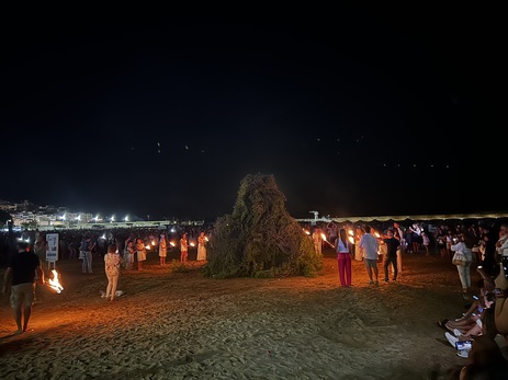 Tras el ritual de fuego, se han disparado los tradicionales fuegos artificiales y, como es habitual, los asistentes han aprovechado para tomar un baño nocturno para compartir sus buenos deseos en el inicio de un nuevo verano.