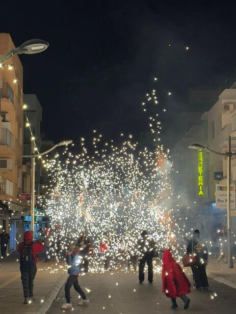 Pequeños y mayores han disfrutado hoy del Correfoc a cargo de los Dimonis de la Falla La Carrasca de Benicarló, que ha comenzado con una gran traca infantil cargada de regalos. Esta ha sido la primera actividad de un fin de semana festivo y solidario que va a tener continuidad mañana sábado con actuaciones matinales en la carpa ubicada en el recinto del Centro de Estudios y la celebración del Día de las Paellas. Esta actividad tiene un objetivo solidario, pues la aportación de los participantes va a ir a beneficio de los afectados por la Dana en Valencia, a través de la Cruz Roja. Tras las paellas, habrá nuevas actuaciones y disco-móvil hasta la madrugada.