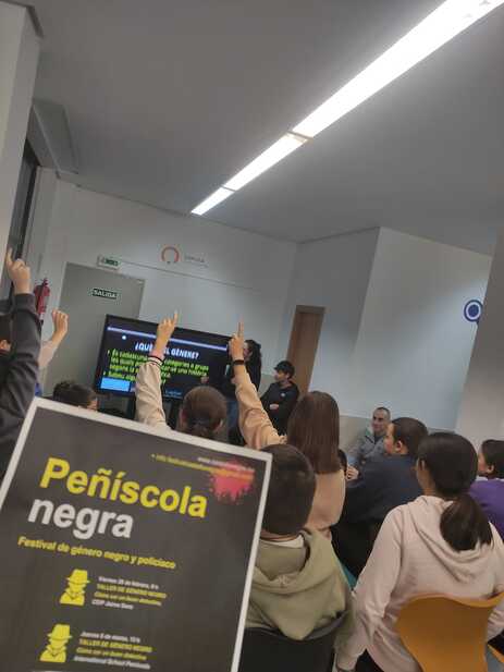 La jornada ha comenzado con el Taller de Género Negro "Cómo ser un buen detective", impartido en el colegio, en el que los más jóvenes han tenido la oportunidad de adentrarse en el mundo de la investigación y el misterio. Este mismo taller se llevará al International School Peñíscola el próximo jueves día 6 de marzo.