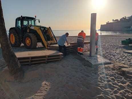 • Las empresas de servicios y la brigada municipal han iniciado las tareas de adecuación y limpieza de la arena, la instalación de pasarelas de madera en accesos e instalado duchas