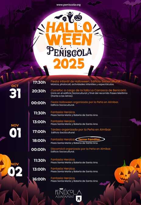 La concejalía de Cultura del Ayuntamiento de Peñíscola conjuntamente con la concejalía de Turismo y Peña en Almíbar han presentado las distintas actividades que hay previstas entre los días 31 de octubre y 2 de noviembre en el mismo municipio .