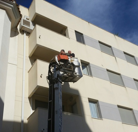 La Policía Local de Peñíscola ha participado hoy en el rescate de una vecina que se encontraba atrapada en el balcón tras cerrarse las puertas correderas de acceso a su vivienda. Al recibir en la Policía, a través del 112, el aviso de parte de un transeúnte al que la mujer de 53 años pidió auxilio, se personó la patrulla en el inmueble de la calle Poniente. Los agentes, tras localizar una grúa con cesta, procedieron a acceder al balcón, manipular la ventana y acceder a la vivienda.