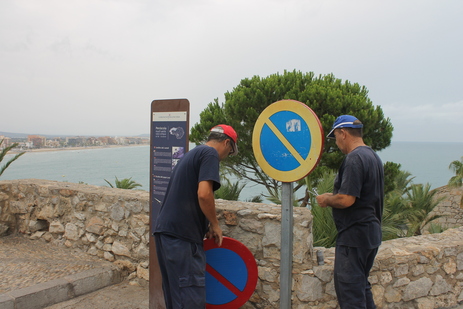 La Brigada Municipal de Obras y Servicios de Peñíscola inicia los trabajos de sustitución de señalización vial que, periódicamente, se llevan a cabo a consecuencia del efecto que tienen sobre los discos el paso del tiempo y la climatología. En los próximos días se va a proceder a la sustitución de señales que se encuentren en mal estado en la Avda de la Mar, Avda Papa Luna, Avda Pigmalión, Llandells y Casco Antiguo.