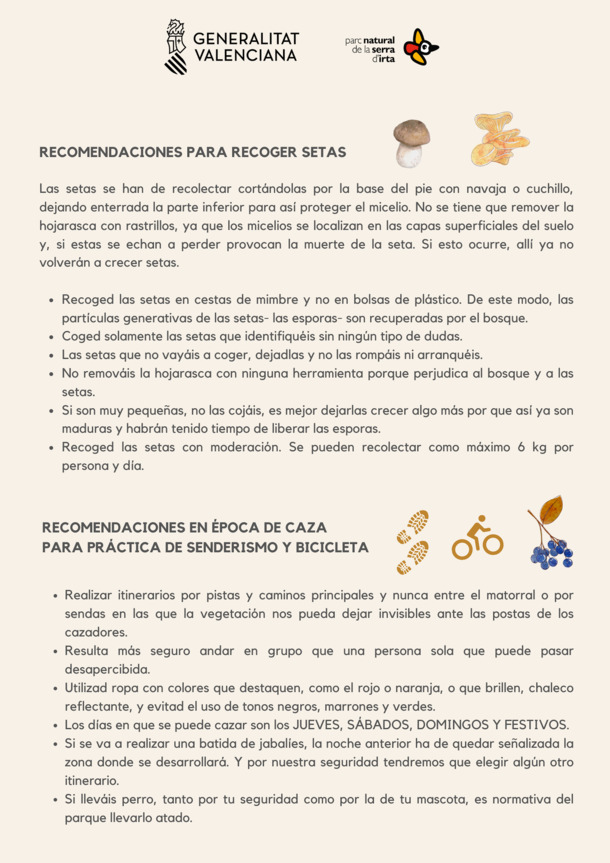 • No está permitido hacer fuego. Excepto en el área recreativa de la Ermita Sant Antoni que dispone de paelleros, siempre que no estén precintados. Además, si fumas, apaga y recoge tus colillas.