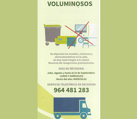 No deposites los muebles, colchones y electrodomésticos en la calle, da muy mala imagen a la ciudad. Te los recogemos gratuitamente